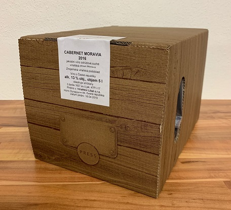 Cenově výhodné balení zvláště vhodné pro restaurace. Víno je naplněno ve speciálním plastovém sáčku který se při vypouštění přes ventil smršťuje. Nedochází k vniknutí kyslíku do obalu a tím k oxidaci vína. Načnuté balení je vhodné spotřebovat do jednoho měsíce.